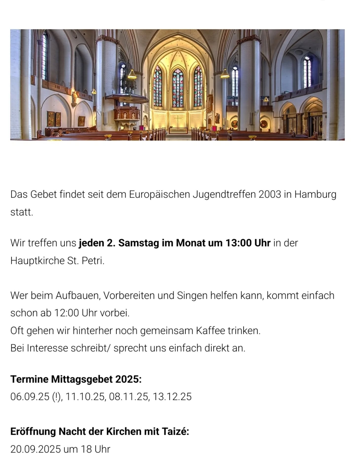 ![Samstag 19.07.25 um 13 Uhr in der Hauptkirche St. Petri am Rathausmarkt [Martinskapelle]. Vorber....](https://scontent-muc2-1.cdninstagram.com/v/t51.82787-15/519484190_18086771671776497_4327129542585380199_n.webp?stp=dst-jpg_e35_tt6&_nc_cat=104&ccb=1-7&_nc_sid=18de74&efg=eyJlZmdfdGFnIjoiRkVFRC5iZXN0X2ltYWdlX3VybGdlbi5DMyJ9&_nc_ohc=B779m4kAtiUQ7kNvwEpk7cU&_nc_oc=Adlh1WVDNTwPBEQdAnNjrsix9sCJWQlCY5BvwPac-Hb1MBL-JYP_bOuKpbJgtFgY3kQ&_nc_zt=23&_nc_ht=scontent-muc2-1.cdninstagram.com&edm=ANo9K5cEAAAA&_nc_gid=ac9QMM2wX6dXfzsYr1gSpA&oh=00_AfcGjnV6S6_wU3UfbQH9_i9k1x7ro7vIlzhjhZv5iVWhYg&oe=6902F0D0)